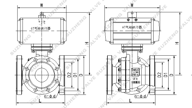 | 配置執行(hang)器型号 | GT、SR、ST、AT、AW系列(liè)單雙作用氣(qì)動執行器 |