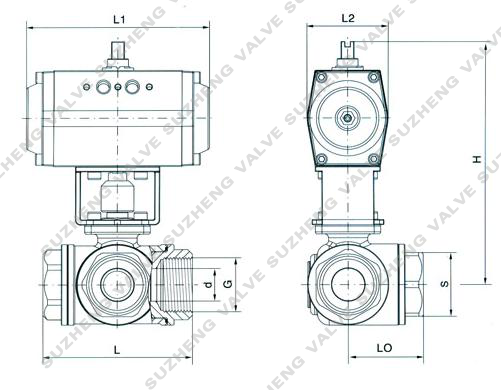 六、氣動三(san)通内螺紋(wen)球閥外形(xing)圖