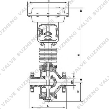 ZJHN氣動雙(shuāng)座調節閥結構圖(tu)