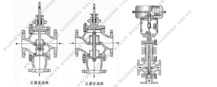 三、氣動薄膜三通(tōng)流調節閥 閥蓋形(xing)式